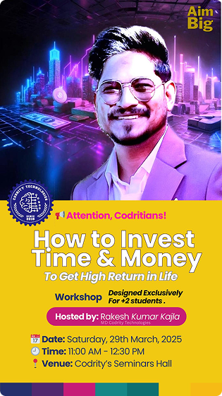 Weekly seminars on soft skills are held in Codrity. In these seminars career guidance is provided and students are taught how to manage time, how to build and manage team, how to communicate and present yourself, how to become problem solver and creative thinker, how to find your passion and work on it and many more. These skills are required for interview time, job and personal life also.